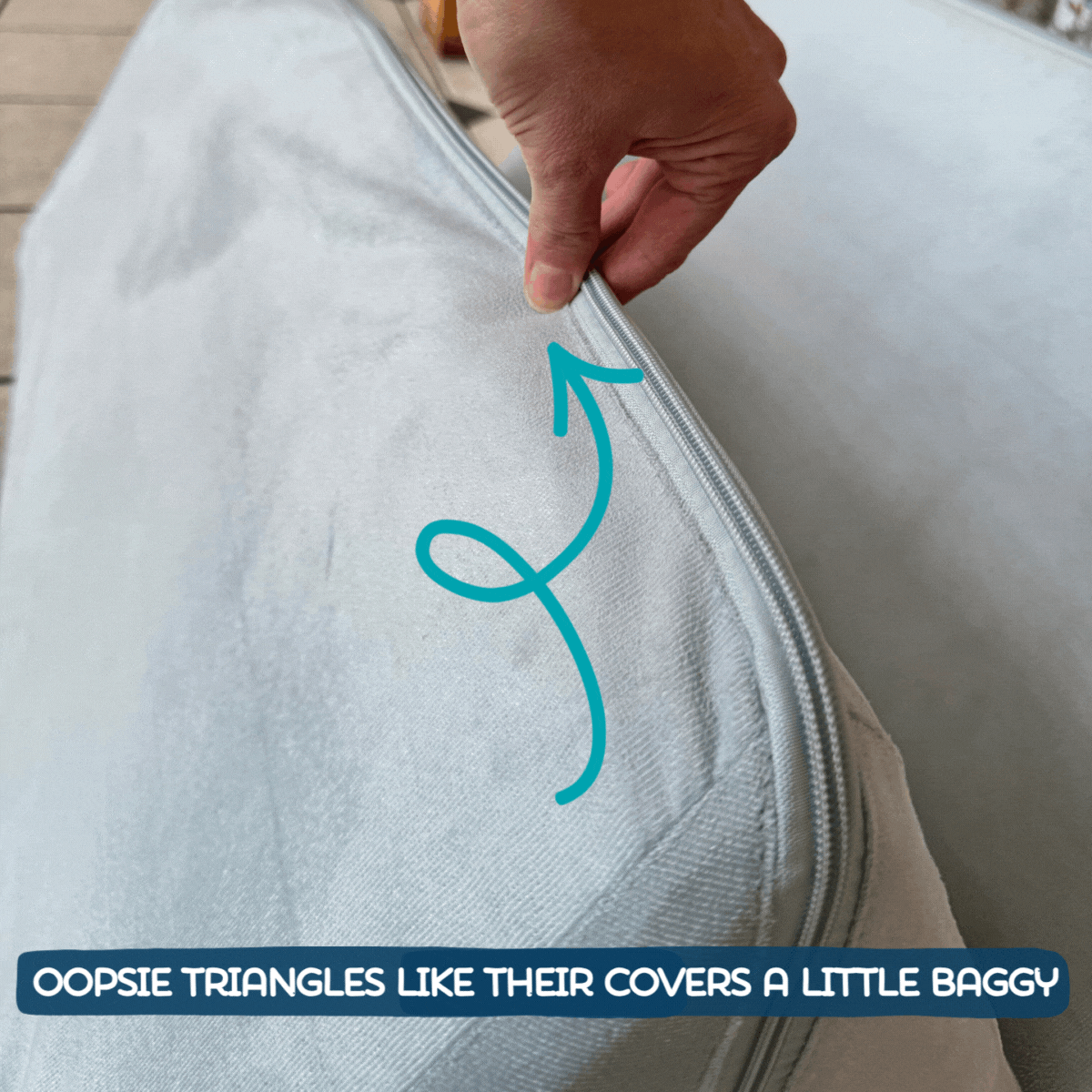 They’re every bit as functional and fun as our regular triangles—they just had a tiny “whoops” in cutting, making their covers a little roomy. They still work perfectly for building, lounging, stacking, and all the imaginative play your kids dream up. Same fun. Slightly quirky. 100% loved.